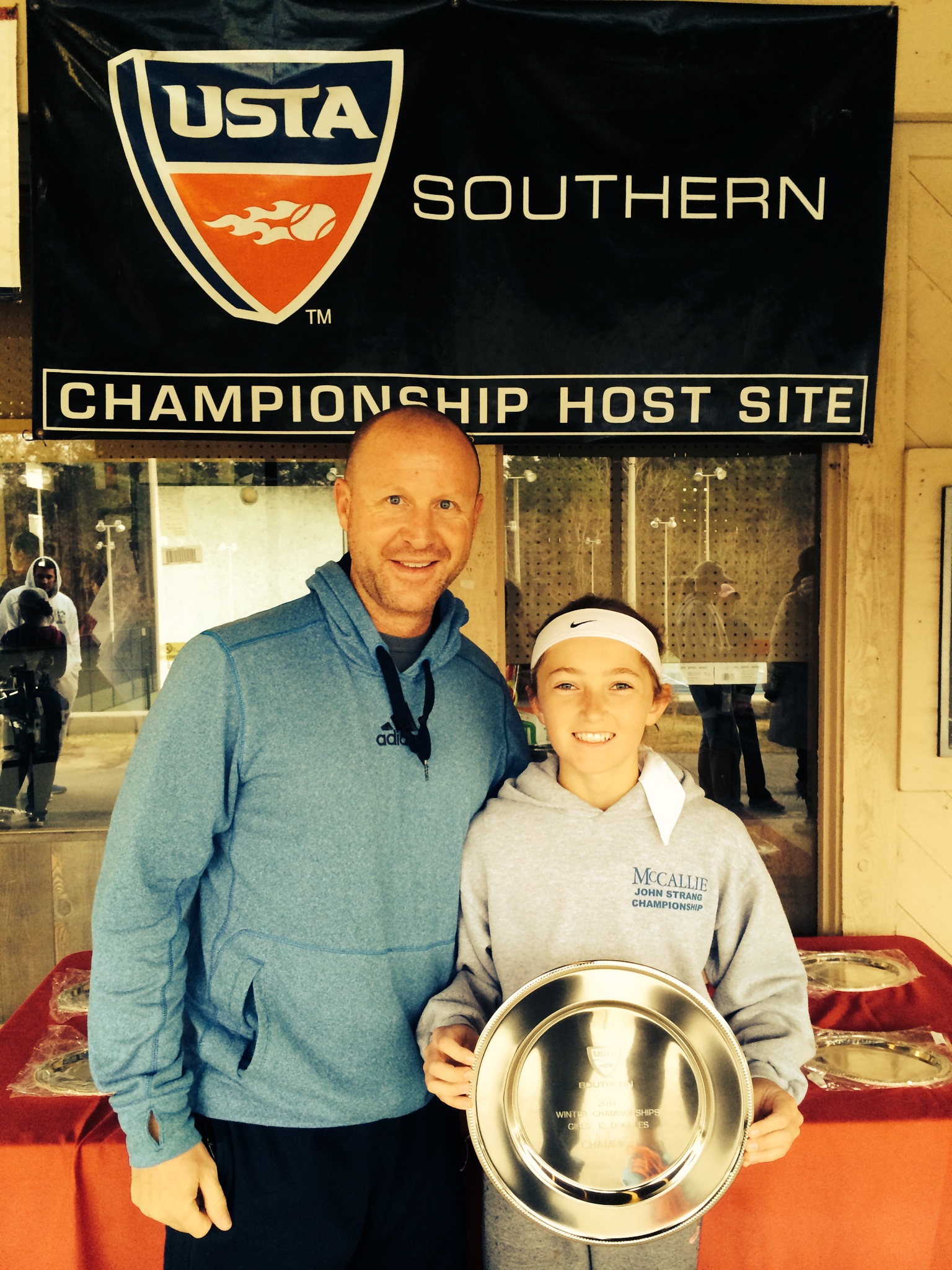 AC began her journey at the Strive Tennis Environment just over a year ago ranked at 135 in the southern rankings. She has blazed her way to top 5 in the south in the girls 12’s rankings as only an 11 year old. It appears she is in a hurry and on quite a tear. She decided she liked the orange of Knoxville and battled to a 9-1 record at the Southern Level 1A Tournament achieving the finals in Singles and taking home the Doubles Title for back to back Southern Titles. Nice start to the year AC. It appears she has Southern cookin on her mind already!